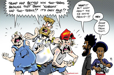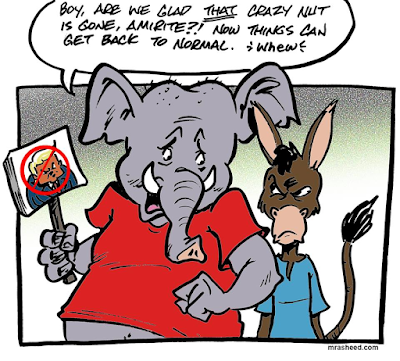 Rasheed, Muhammad. "After Trump." Cartoon. The Official Website of Cartoonist M. Rasheed 06 Aug 2017. Marker w/Adobe Photoshop color. <https://www.mrasheed.com/2017/04/notes-while-observing-doodles.html>