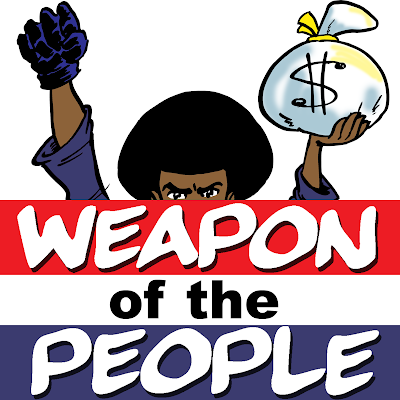 Muhammad Rasheed - On 16 Oct 2020, I finally got around to updating the Weapon of the People logo, switching it from the 'Pan-Africanist' red, black & green over to the red, white & blue of Old Glory. I hesitated after I had long already changed the colors over on my little Activist protagonist's tunic, because I really struggled with the decision. I even mapped the process of working towards my final decision out in public within a short series of cartoons: