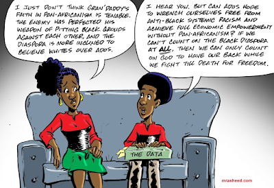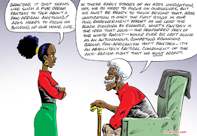 Rasheed, Muhammad. "Now Pre-Registering for the Pan-African Ideal." Cartoon. The Official Website of Cartoonist M. Rasheed 27 Nov 2019. Pen & ink w/Adobe Photoshop color. <https://www.mrasheed.com/2019/11/now-pre-registering-for-pan-african.html>