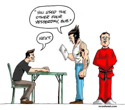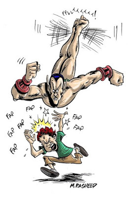 Muhammad Rasheed - Now here we are! :D It's been very fun and quite fulfilling. Its definitely My Purpose. Even though I call it a Gag-A-Day series, I don't strictly adhere to that as a rule, since I noticed early on that I queue new ideas very rapidly, but if I don't draw them up right away then the concept will get cold to me and the final execution will feel stiff. I don't like that, so I tend to create as I go. Sometimes I'll just do one for the day, while other times I'll dump as many as five or six. To date, I'm 47 cartoons ahead for the year. If I wanted, I could take December off altogether and still meet my mandatory 365 by 31 Dec, but of course I'm not going to do that. God willing, I'll actually end the year in the 400 range.