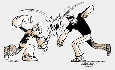 2.) My cartoons are developed for real life dialogues and arguments I have with real life people. That's the material I draw from as inspiration.