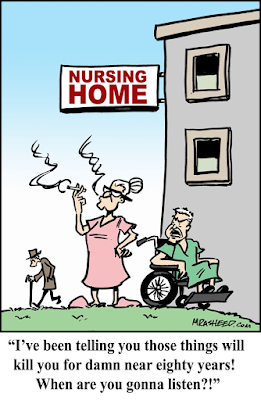 Rasheed, Muhammad. "Nursing Home Smokers." Cartoon. The Official Website of Cartoonist M. Rasheed 16 Mar 2012. Marker w/Adobe Photoshop color. <https://www.mrasheed.com/2012/03/daily-gag-cartoon-1.html>