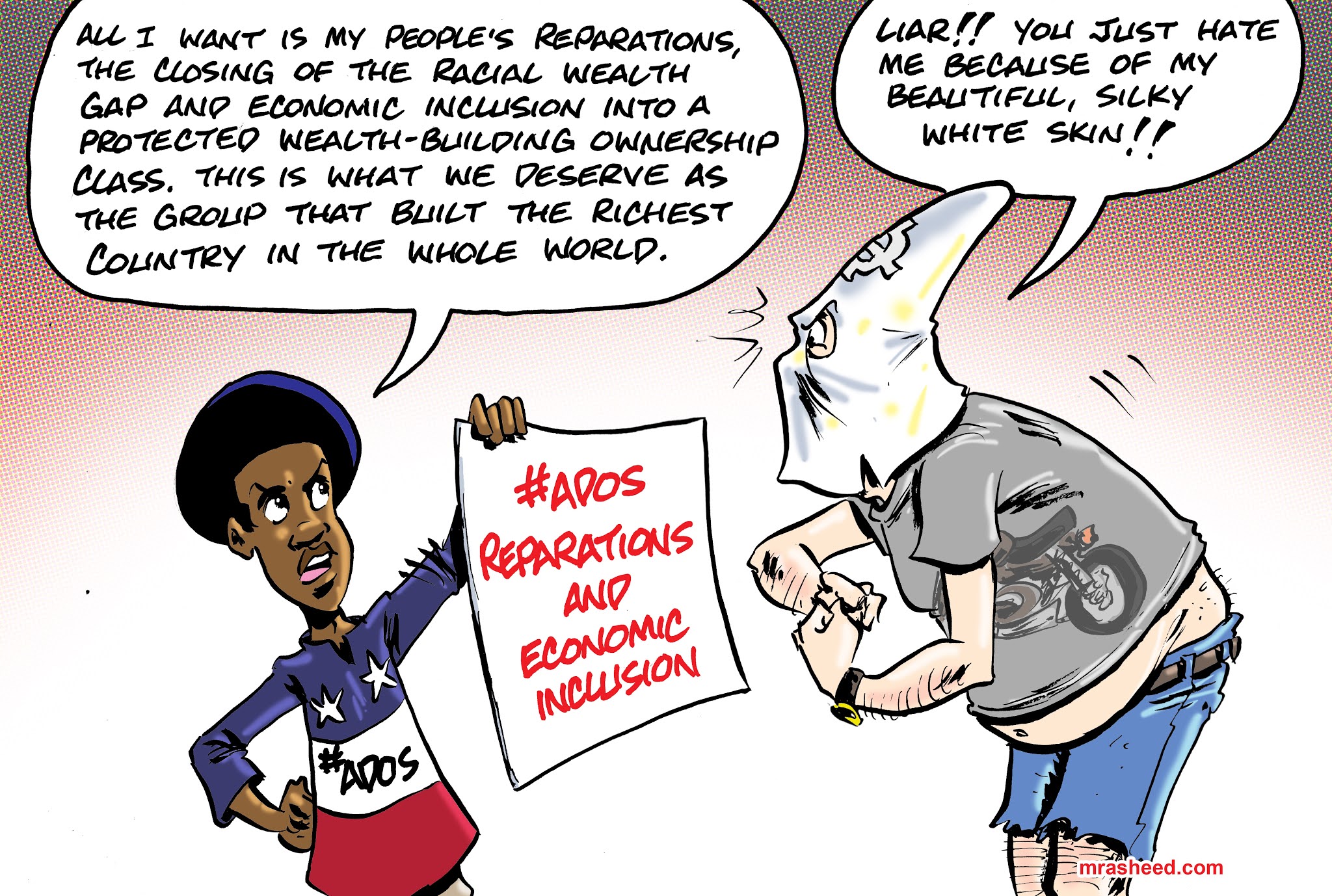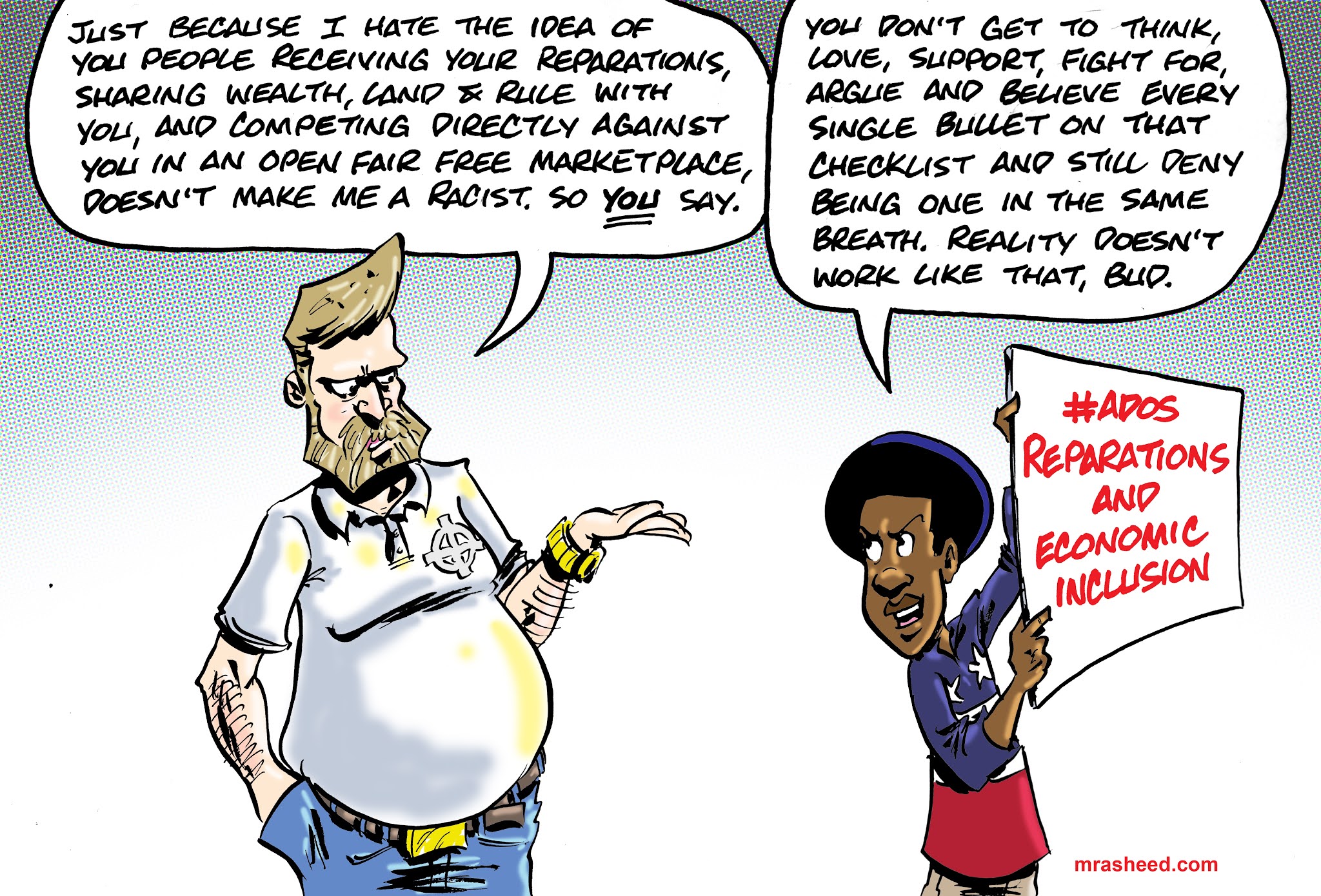 Muhammad Rasheed - America was built by free slave labor and, after slavery was abolished, the former slave class was still exploited and plundered, preventing them from building legacy wealth over generations. Reparations is to make up for that historic wrong and that is the inherent cost for enjoying this country's benefits.