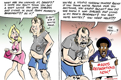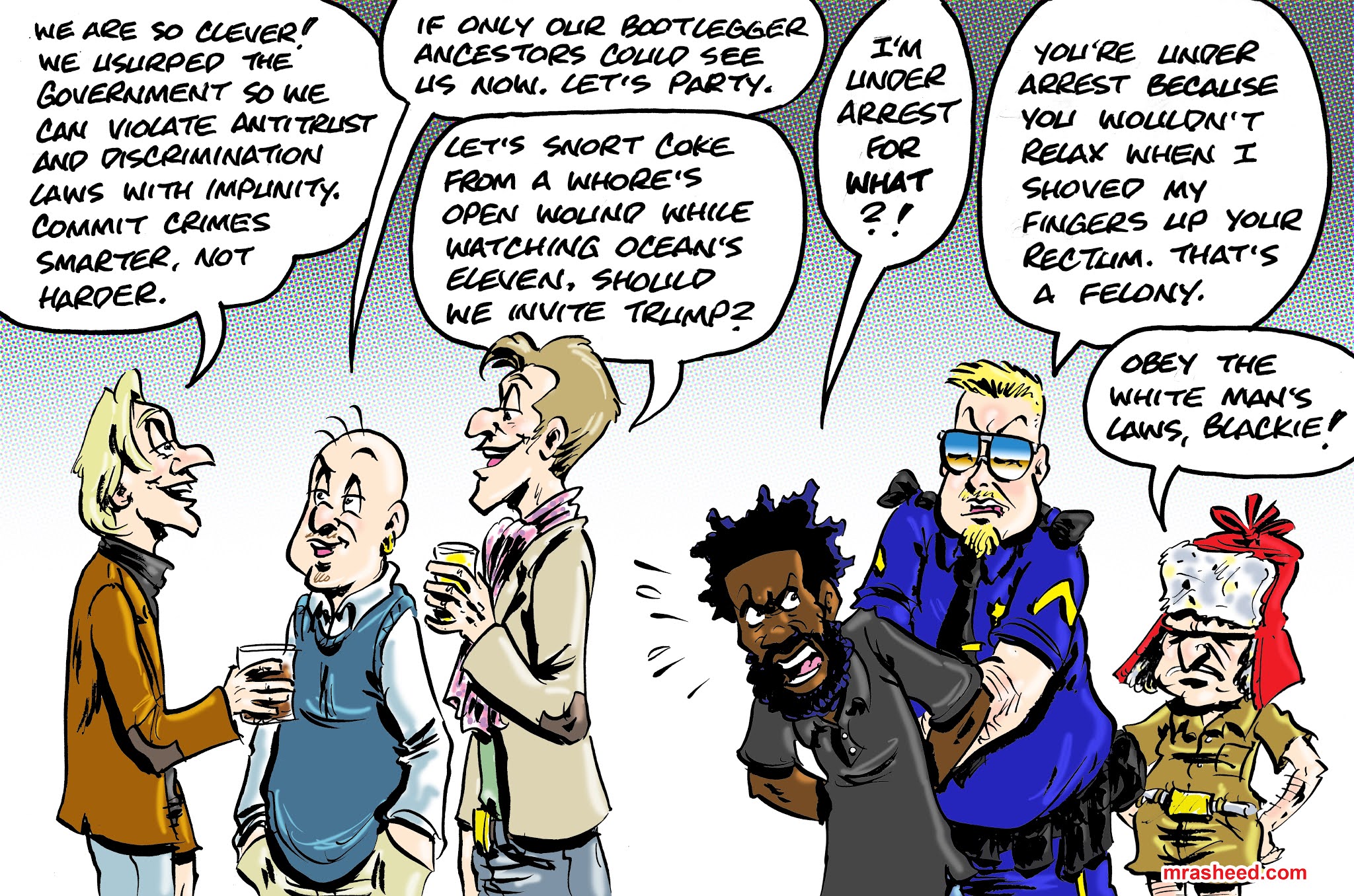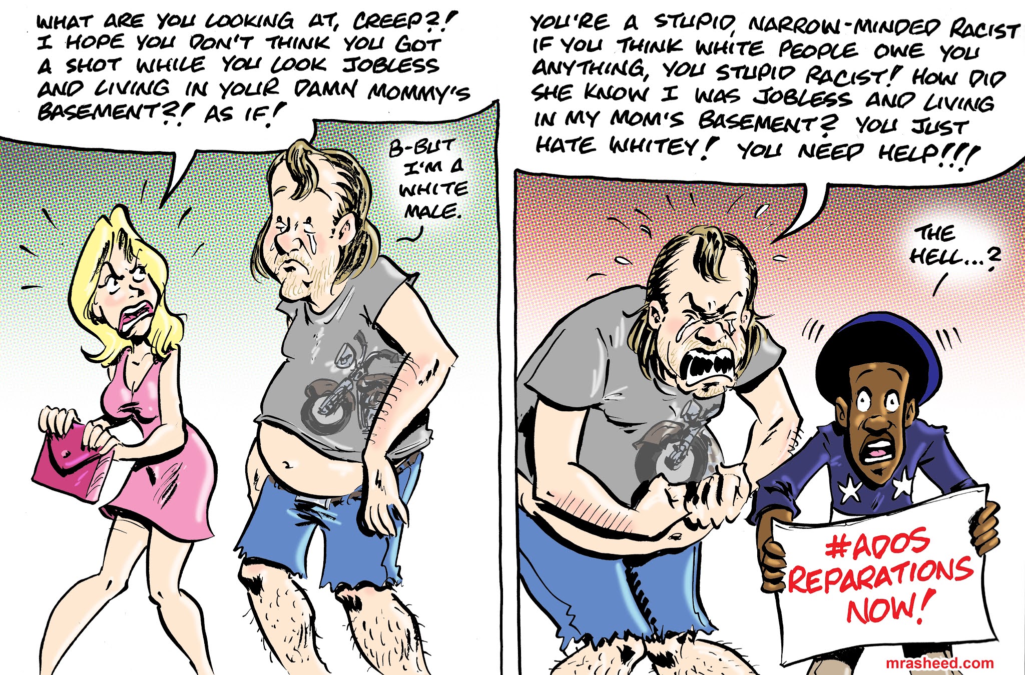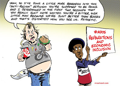 Rasheed, Muhammad. "Protecting the Glorious White Race from 'Racism'." Cartoon. The Official Website of Cartoonist M. Rasheed 23 Oct 2020. Pen & ink w/Adobe Photoshop color.