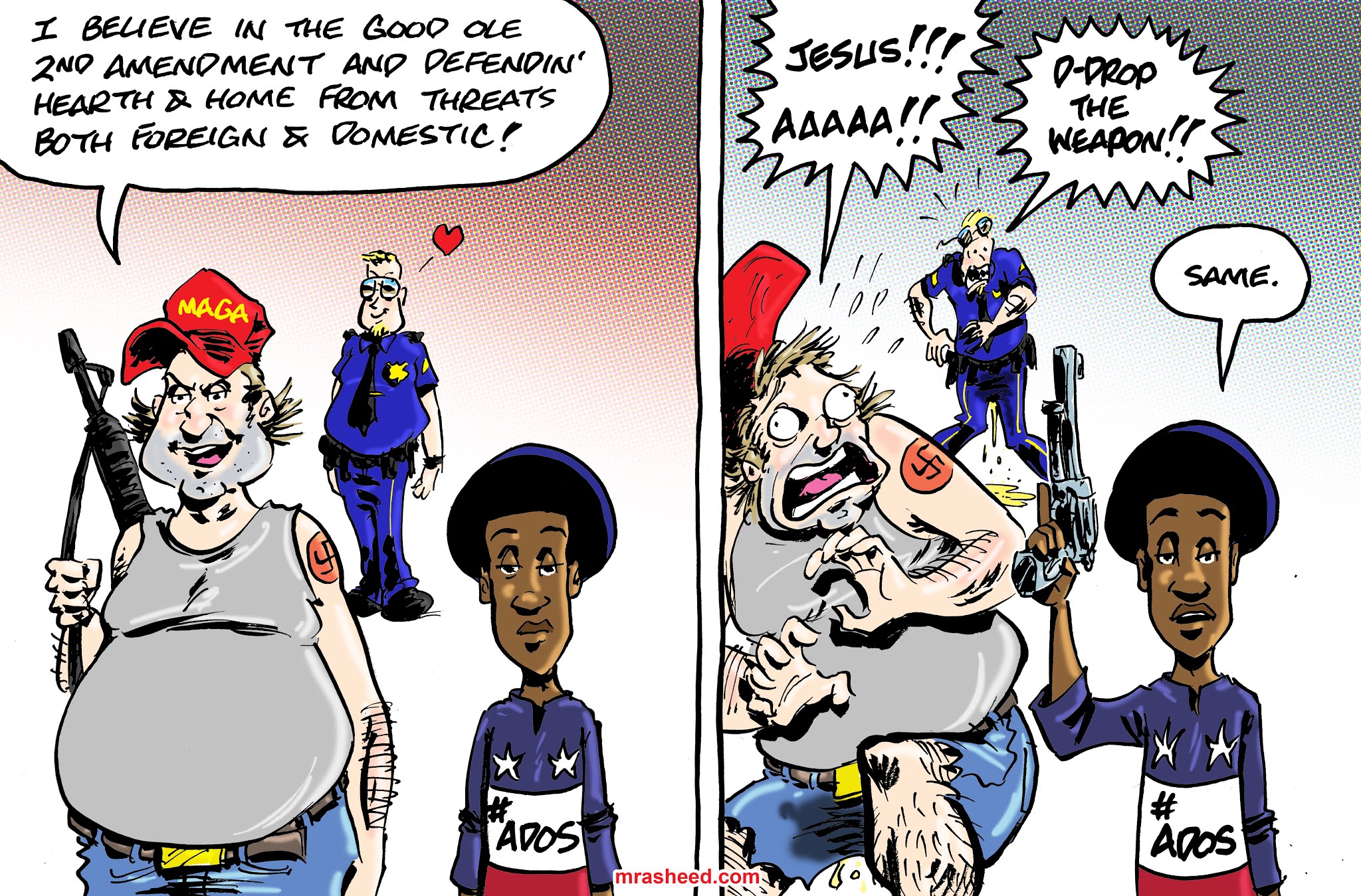 Rasheed, Muhammad. "Turning Suspicious Lemons into Red White Racist Lemonade." Cartoon. The Official Website of Cartoonist M. Rasheed 30 Sep 2020. Pen & ink w/Adobe Photoshop color.