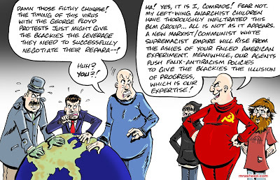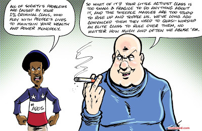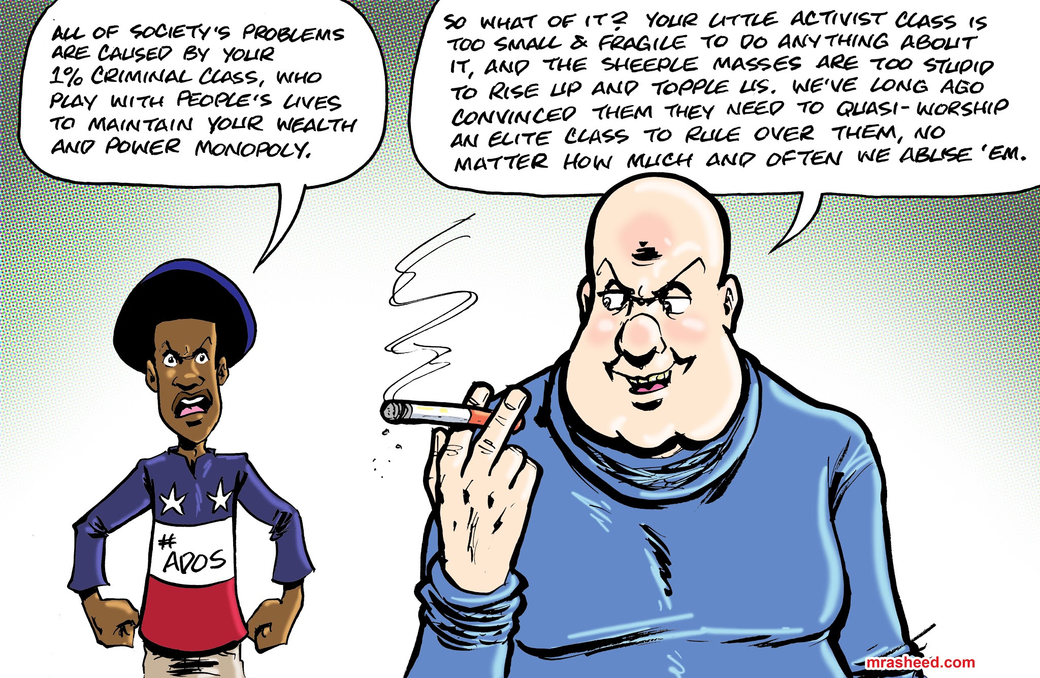 Rasheed, Muhammad. "Conniving Mouthpiece of the 1% Criminal Class." Cartoon. The Official Website of Cartoonist M. Rasheed 01 Oct 2020. Pen & ink w/Adobe Photoshop color.