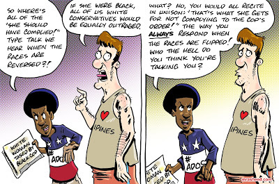 Muhammad Rasheed - uhhh... No. You would say, in chorus: "That's what she gets for not complying to the cop's order!" the way you ALWAYS say when the races are reversed.