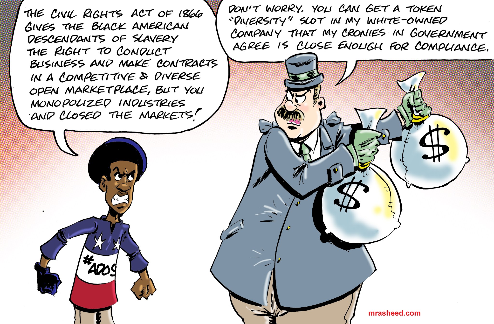 Rasheed, Muhammad. "The Fake Diversity Loophole of Systemic Racism." Cartoon. The Official Website of Cartoonist M. Rasheed 12 Sep 2020. Pen & ink w/Adobe Photoshop color.
