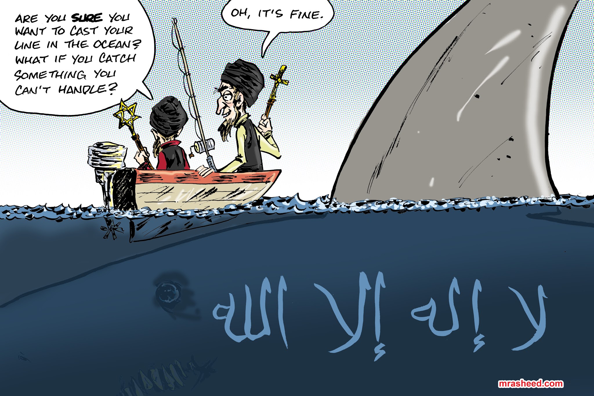 Rasheed, Muhammad. "Fishing for Strictly Doctrinal Like-Minds." Cartoon. The Official Website of Cartoonist M. Rasheed 13 Sep 2020. Pen & ink w/Adobe Photoshop color.