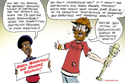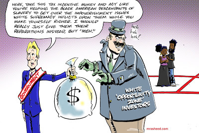 Rasheed, Muhammad. "Protecting Racism From the Other End." Cartoon. The Official Website of Cartoonist M. Rasheed 12 Sep 2020. Pen & ink w/Adobe Photoshop color.