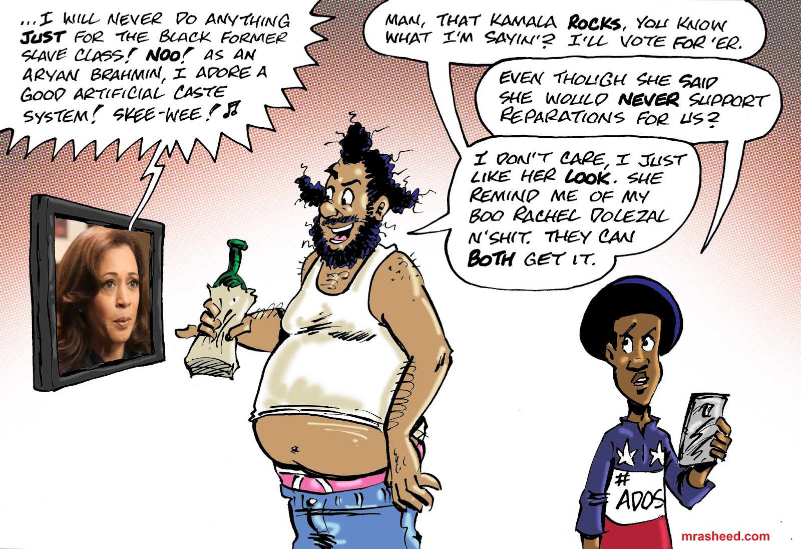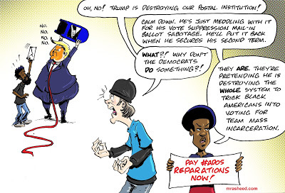 Rasheed, Muhammad. "Champion Policies, Not People." Cartoon. The Official Website of Cartoonist M. Rasheed 19 Aug 2020. Pen & ink w/Adobe Photoshop color.
