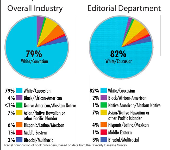 4.) “The average book will pass through a white agent, a white editor, a white publicist, a white sales team, a white cover artist, and white booksellers. And this process is considered natural and objective.” ~Brit Bennet