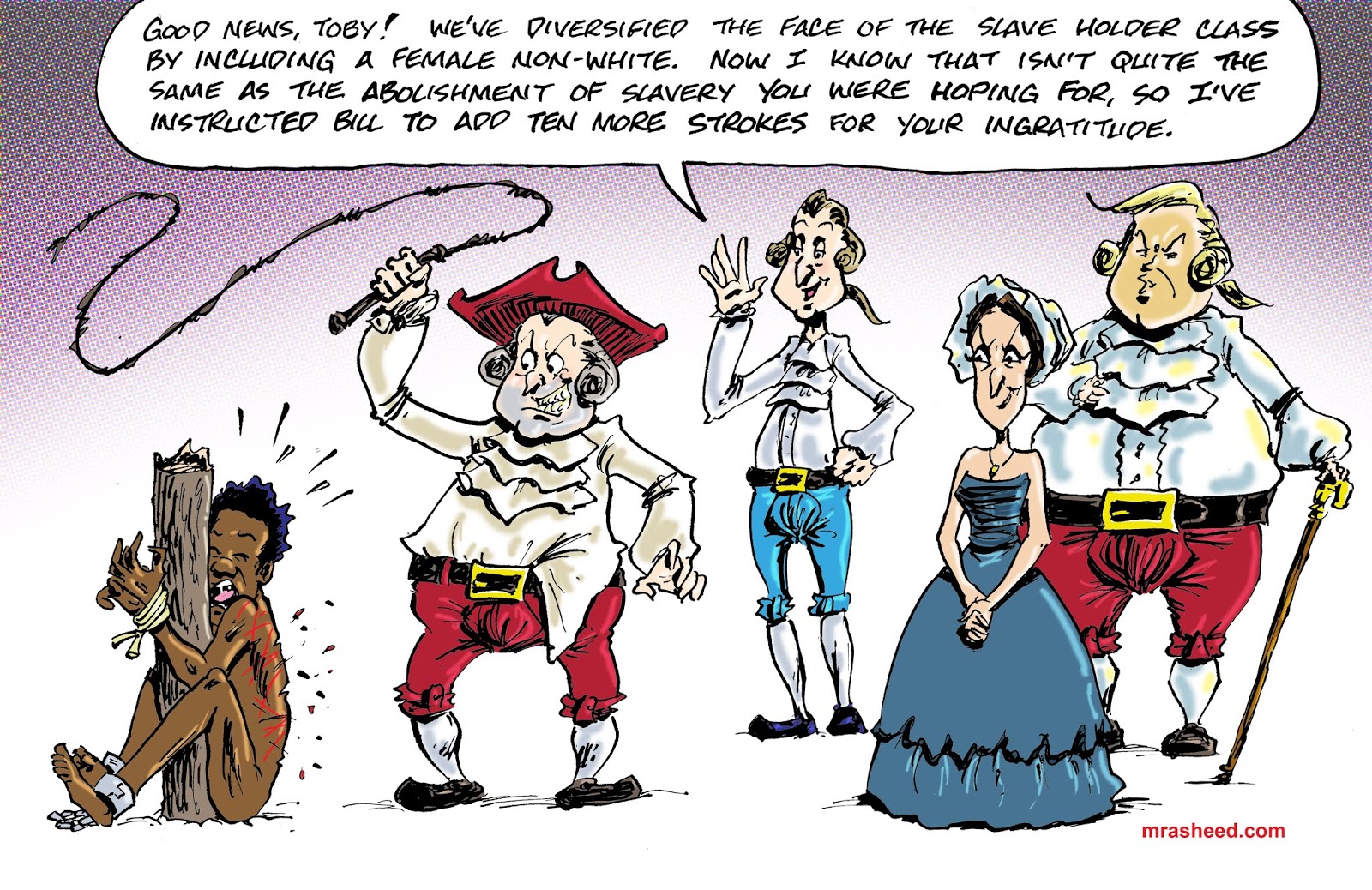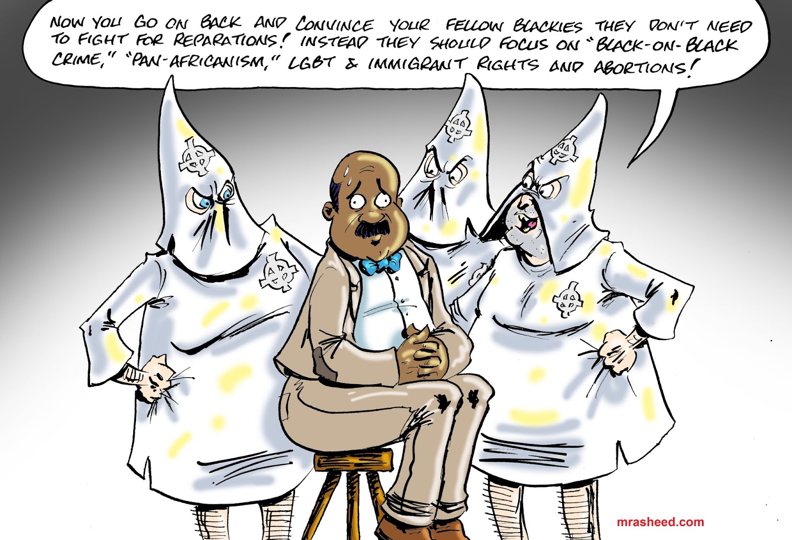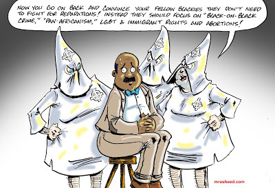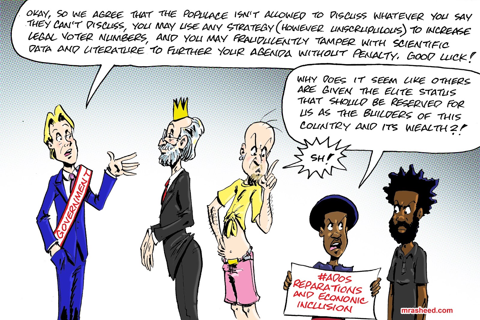 Rasheed, Muhammad. "The Diabolical Usurpation of the Civil Rights Fight." Cartoon. The Official Website of Cartoonist M. Rasheed 31 Jul 2020. Pen & ink w/Adobe Photoshop color.