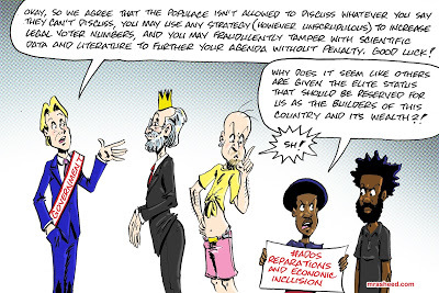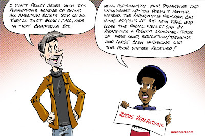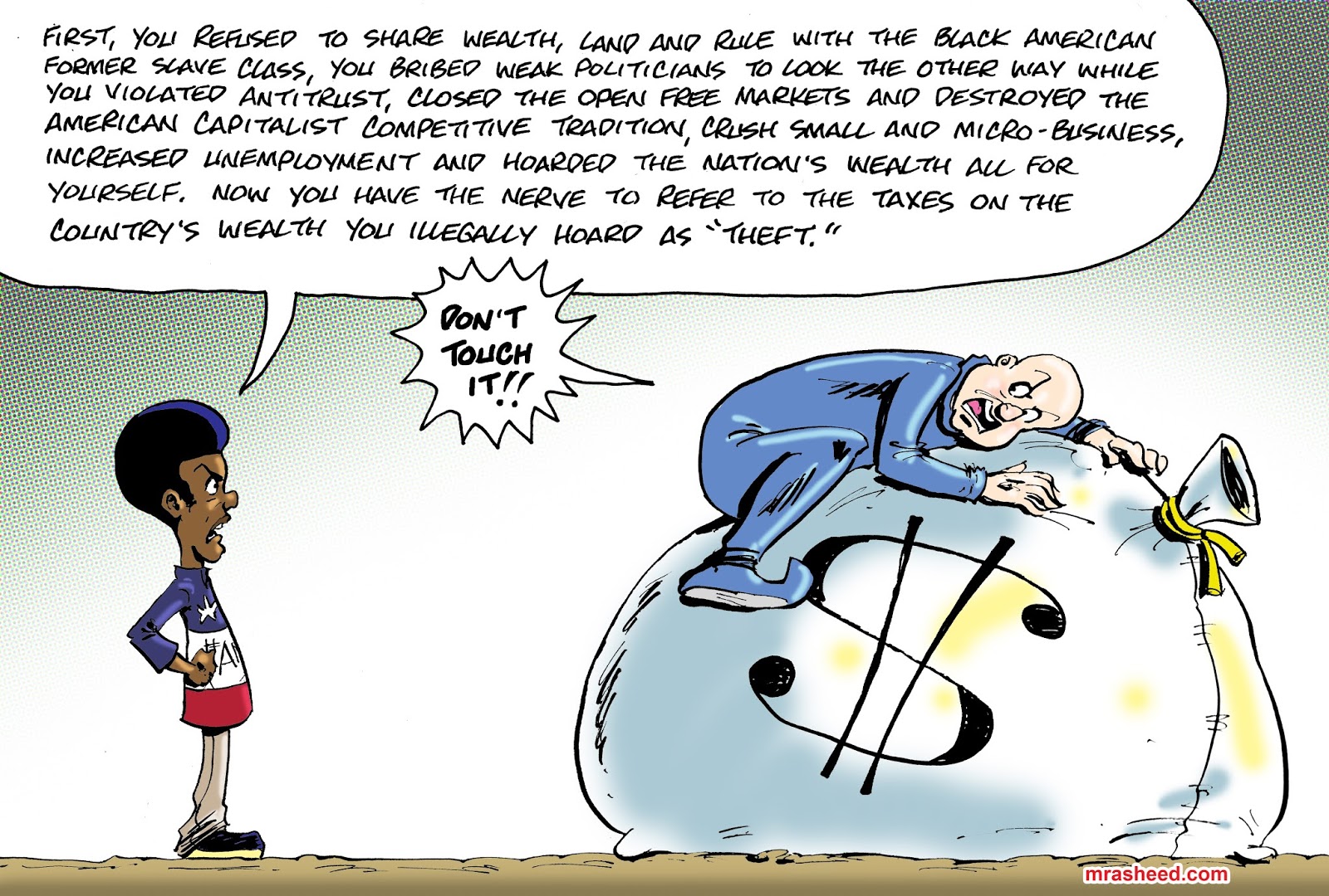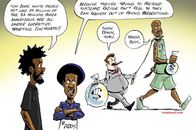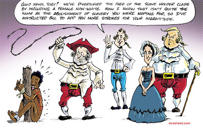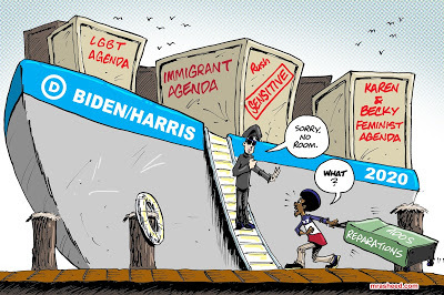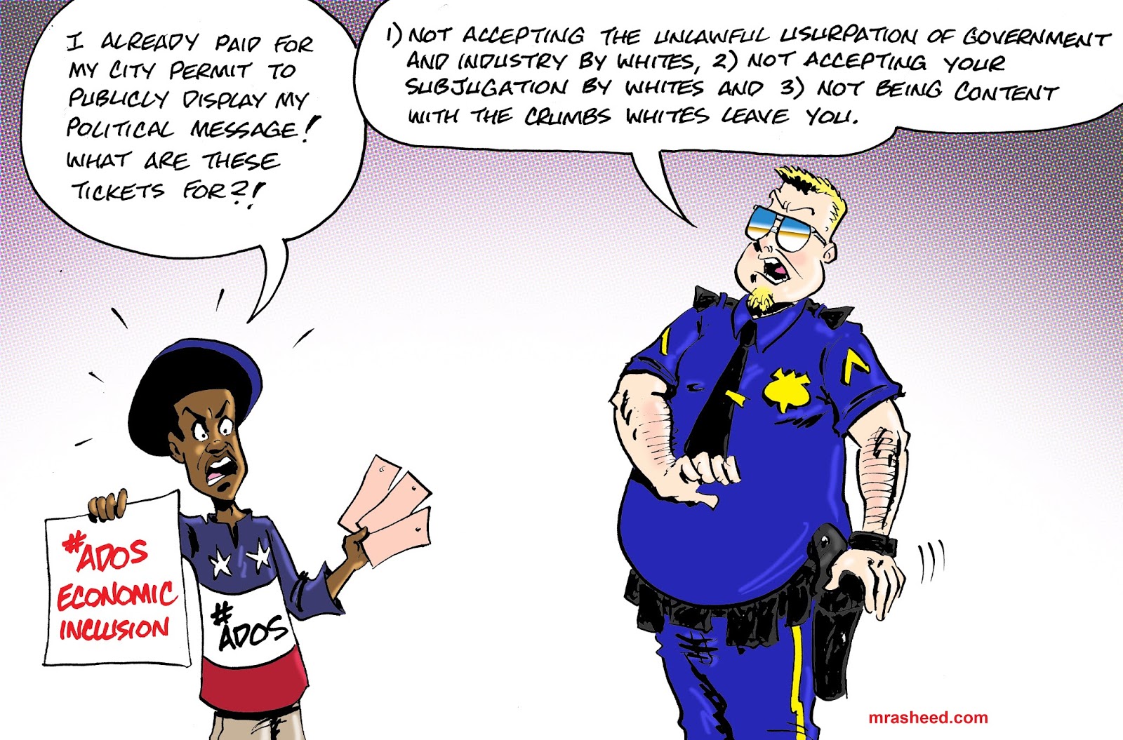 Rasheed, Muhammad. "The Diabolical Usurpation of the Civil Rights Fight." Cartoon. The Official Website of Cartoonist M. Rasheed 31 Jul 2020. Pen & ink w/Adobe Photoshop color.