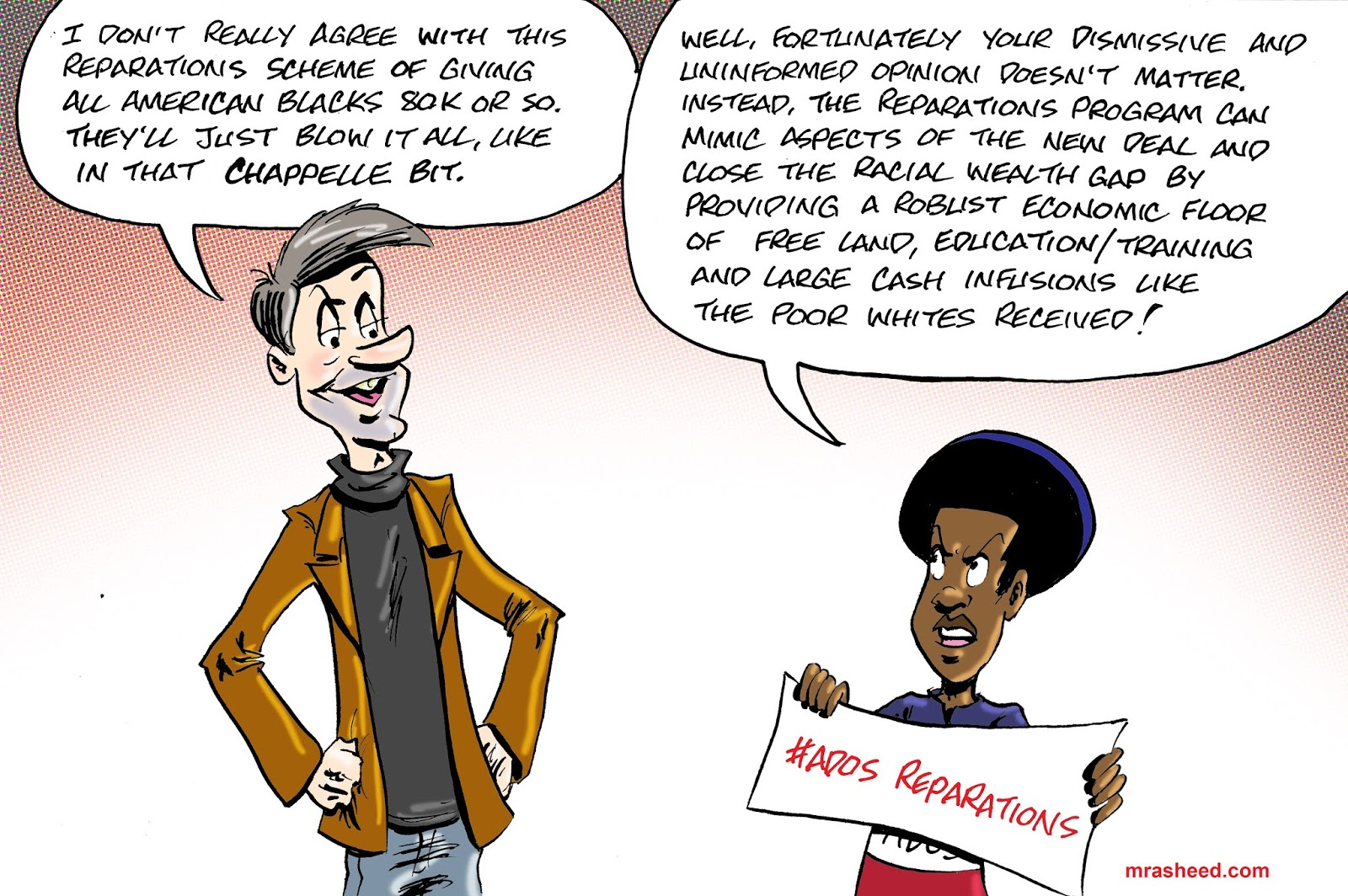 Rasheed, Muhammad. "Opinionated, Uninformed, Racist Public Intellectual." Cartoon. The Official Website of Cartoonist M. Rasheed 31 Jul 2020. Pen & ink w/Adobe Photoshop color.