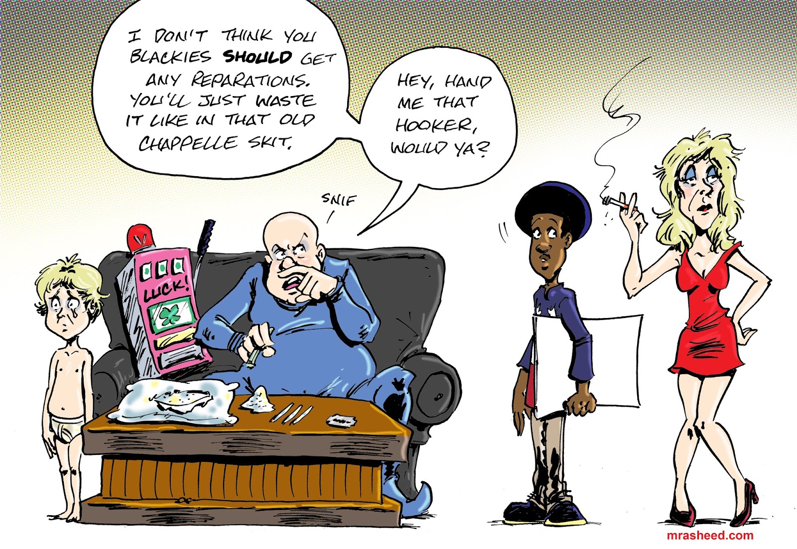 Basically you're telling me that you're drawing the palm tree jungle out of defiance because you'd prefer to draw primitive black people instead of primitive white people.