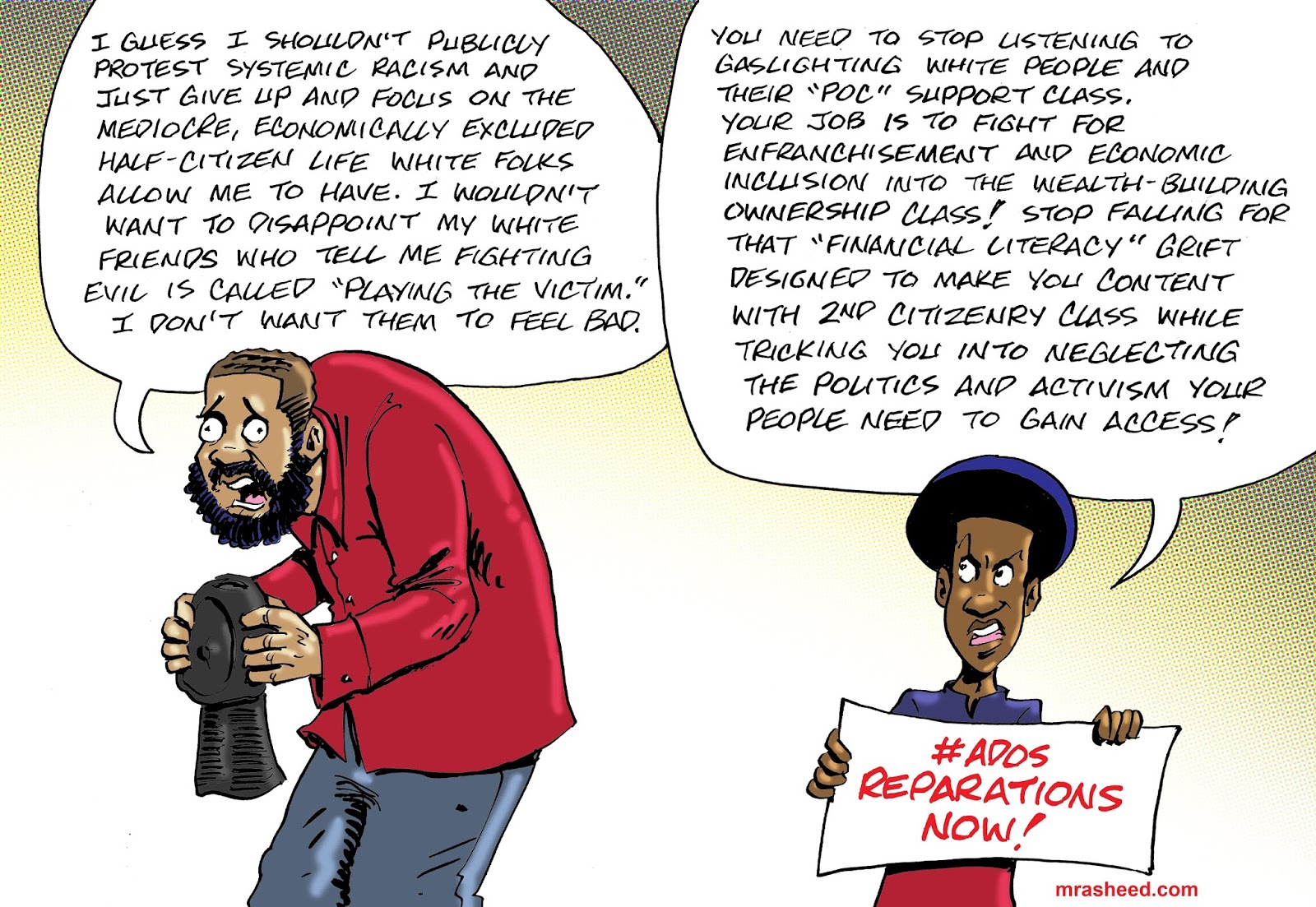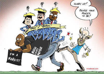 Rasheed, Muhammad. "Weaponizing Information Age Clutter to Protect White Supremacy." Cartoon. The Official Website of Cartoonist M. Rasheed 15 Jul 2020. Pen & ink w/Adobe Photoshop color.