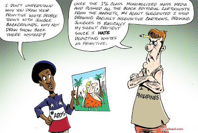 Gary McCoy - Exactly. There used to be a time when I would accurately depict people who live in the tropical regions with darker skin pigmentation. But I have been advised so as not to offend any readers or concern any editors, this would be the proper way to depict search native people.