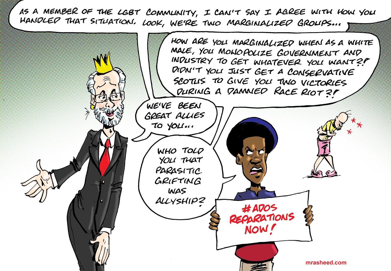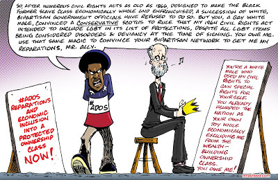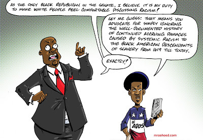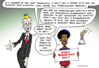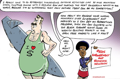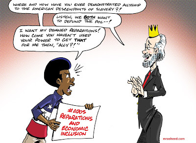 Rasheed, Muhammad. "The Not-So-Undercover Effort to Turn Public Opinion Against Black Economic Inclusion." Cartoon. The Official Website of Cartoonist M. Rasheed 21 Jun 2020. Pen & ink w/Adobe Photoshop color.