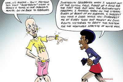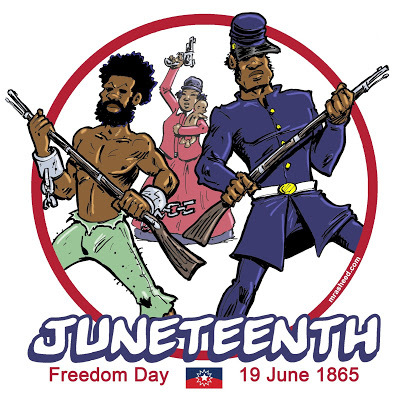 Rasheed, Muhammad. "Celebrate Juneteenth 2020." Cartoon. The Official Website of Cartoonist M. Rasheed 19 Jun 2020. Pen & ink w/Adobe Photoshop color.