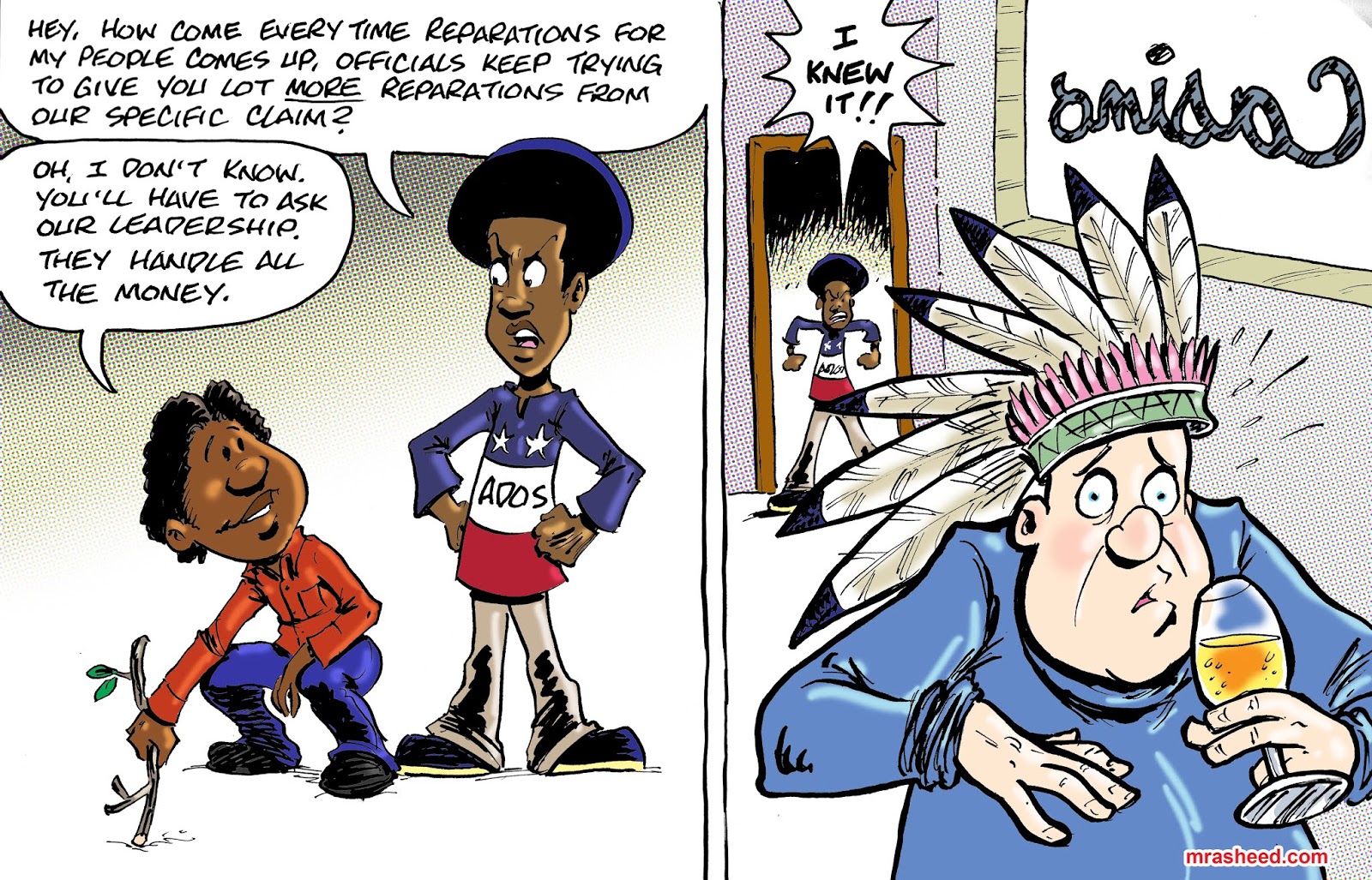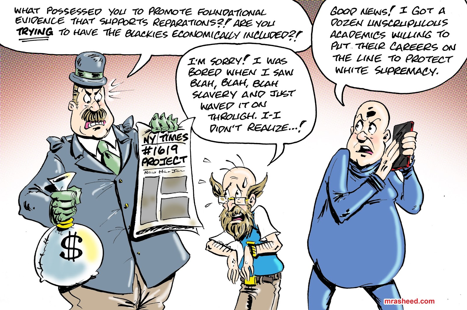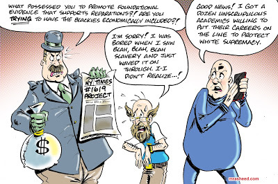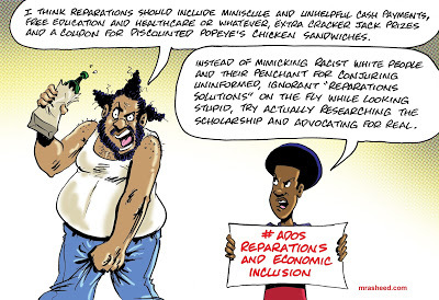 Rasheed, Muhammad. "Champions of Reparations." Cartoon. The Official Website of Cartoonist M. Rasheed 13 Jun 2020. Pen & ink w/Adobe Photoshop color.