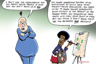 It was rhetorical. You’re offended because you’re racist and you’re used to the white racist aristocracy covering that over for you in mainstream media, so my cartoons shock you with cognitive dissonance. It’s not hard.