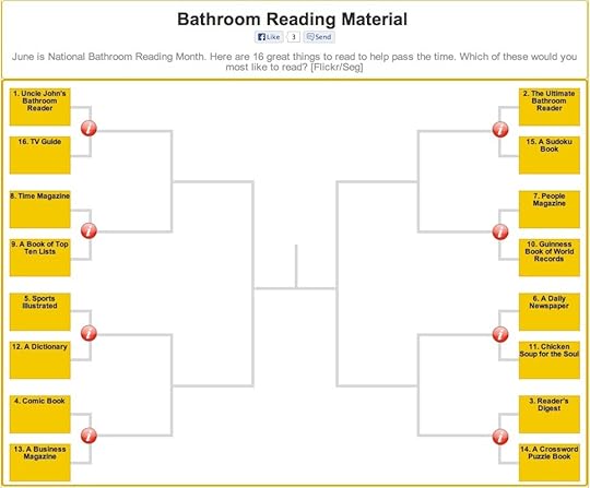 June is National Bathroom Reading Month. Here are 16 great things to read to help pass the time. Which of these would you most like to read?