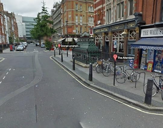 It’s called “The Attendant.” Just another public toilet turned into coffee shop. Here are some pics. The first one we snagged from Google Street View. It’s the green cage on the sidewalk! (And never mind that Google Street View thinks that parking sign in the coffee shop.)