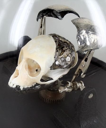 LISA BLACK’S “DEPARTED VERVET V” (made from “vervet skull, antique clock/watch parts, mixed metal components”)
