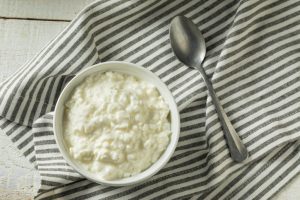 It’s the most familiar and commonly consumed form of cheese curds (at least in the United States). What are curds? Coagulated chunks of milk proteins that came together due to the addition or presence of an acid, such as rennet (which naturally occurs in sheep stomachs) or vinegar. Curd based cheeses date back to ancient times, but cottage cheese as we know it, in name and form, originates in 1830s England, when dairy farmers made curd cheese in their homes, or cottages, with dairy waste left over from making other products elsewhere on the farm, such as butter.