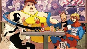 Ashley Crawford is another member of the Great Lakes Avenger…well, when she’s not modeling, that is. When she’s on the clock to fight crime, she transforms into Big Bertha, who has the ability to instantly make herself extremely overweight. In order to turn from Big Bertha back into Ashley Crawford, the character continuously vomits until she’s at her “regular” size. (Really.)