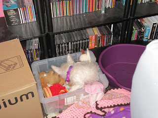 Oh, and here are a few photos the humans took of me in my toy box. They seemed to think it was cute. I'm not sure why. I mean, I was just in there to get a particular toy I wanted to play with, which was hard to reach. But, anyway, here you go: