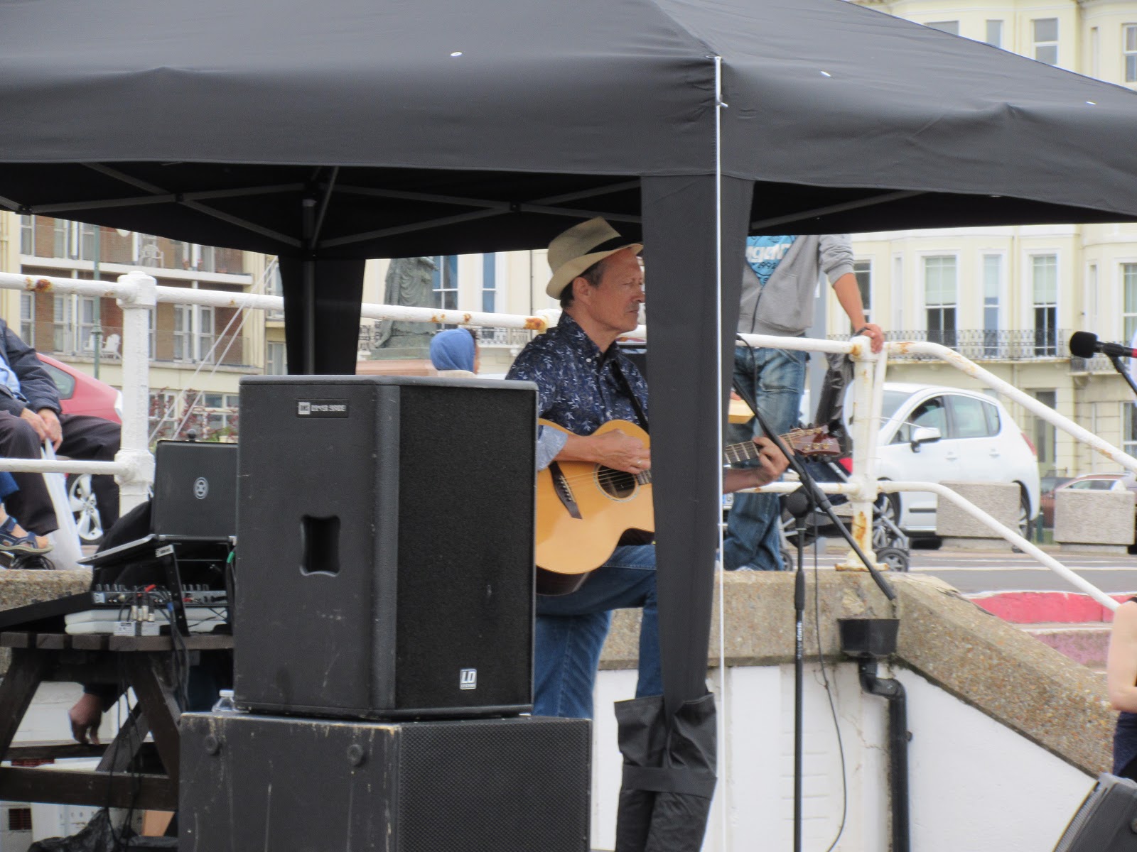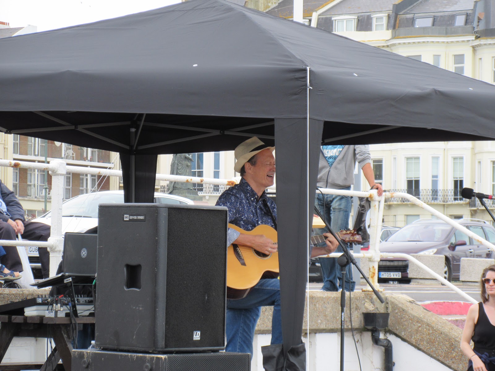His name is David Mosey. He was pretty good. Not a musician I'd rush out to buy music by, perhaps, but certainly entertaining.