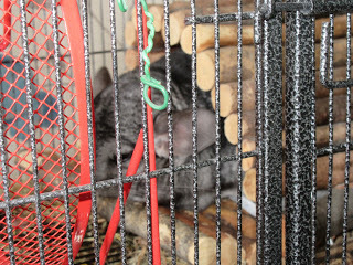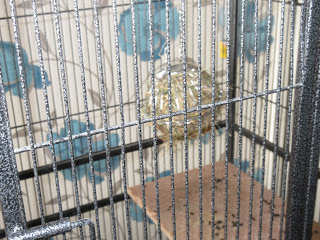 They had to move my bell to put it where it is, because there was another place where the bell could go, but the size of that made it difficult to find another good place for it in our cage. I don't mind too much though. I mean, I'd complain if they took the bell away, but they haven't done that, and have given us this fun way to get hay. I say "my" bell, because Mollie doesn't play with the bell. I love it though, and use it both to play with and to get the attention of the human caretakers. They can tell which I'm doing by how I ring it: soft rings for play time, harder ones for attention.