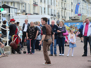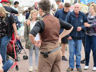 On July 1st 2017, we went to the anual local festival. Well, part of it. There was stuff happening the night before, stuff happening later that day, and plenty of other stuff happening in other parts of town at the same time as the stuff we went too as well, but some of it we didn't know about in time to go to, and some of it we didn't want to go to. Regardless, we found ourselves spending several hours of Saturday July 1st on the beach, eating chips (as in fries) and ice-cream, while enjoying the entertainment. It was perfect weather for it too: warm but not hot, and dry (well, until later some time, when it rained, but we were home by then so I don't care about that).