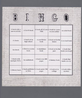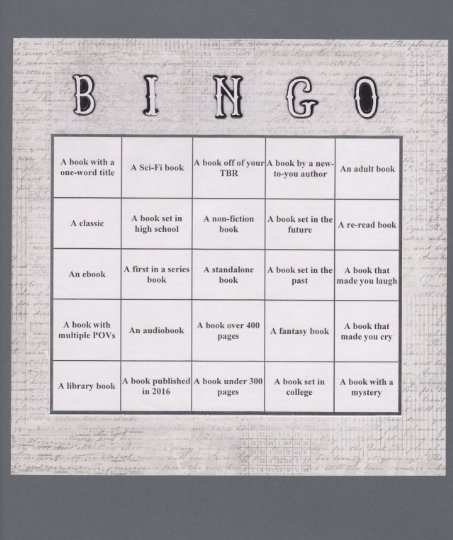 One of the groups I'm a member of over on Goodreads tends to be quite creative with their challenges. For example, the reading challenge for the second quarter of this year, which ran from April 1st to June 30th 2016, was based on a game of Bingo.