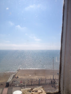 The above photo was taken a couple of weeks ago, while looking out of the window in the computer room (which is beside me while I'm at my computer). The day before had been quite stormy, but this particular day was a beautiful one, where plenty of our neighbours were out enjoying being able to be beside the ocean in the sunshine; many of them with their dogs for company. The ocean birds - especially the seagulls, of course - were also having a great day; enjoying all the people being out there, because most people take snacks, and many people are willing to share them with the birds.