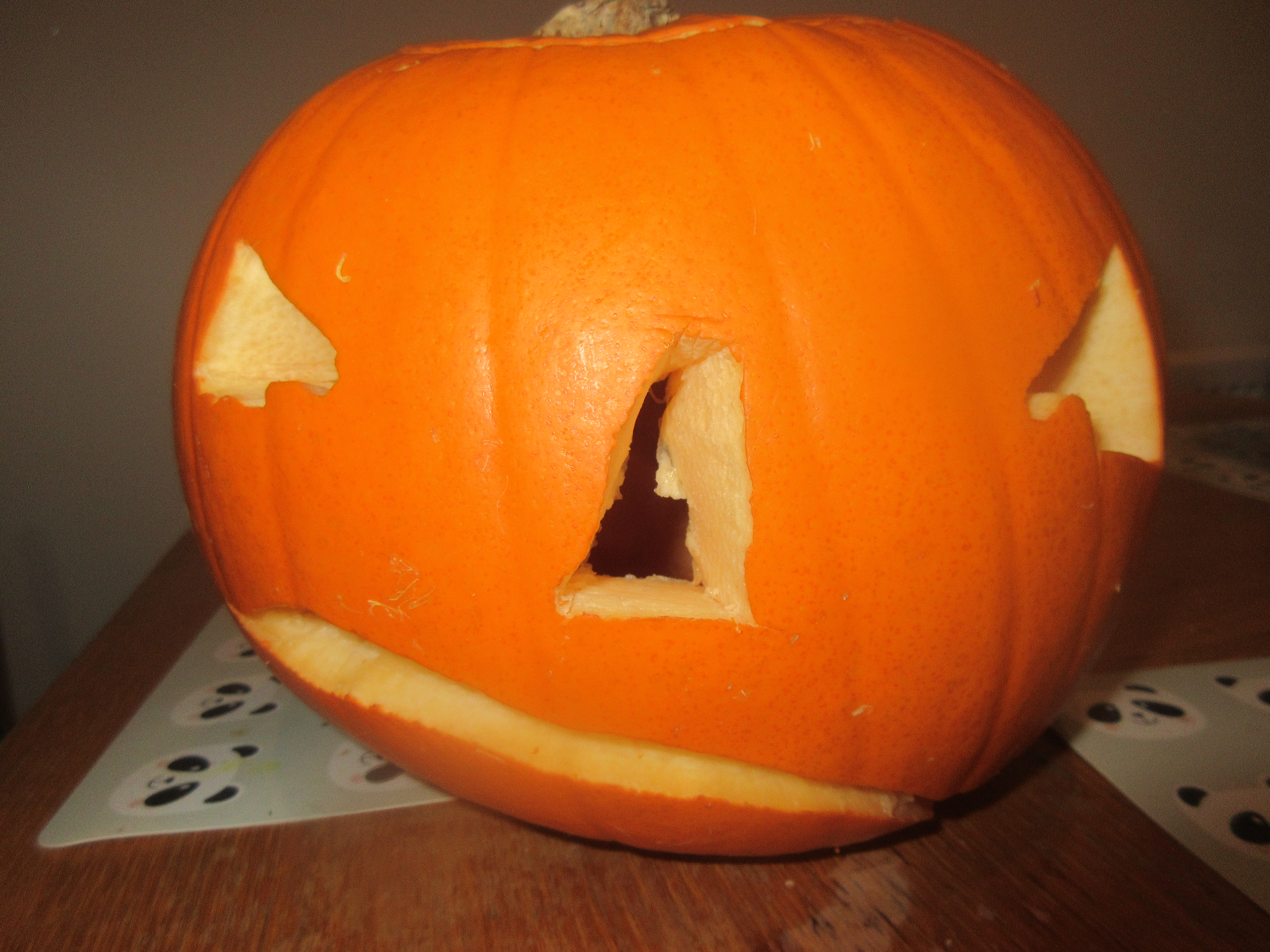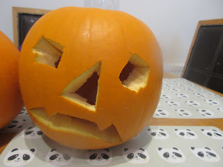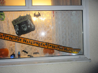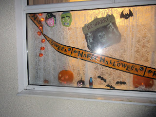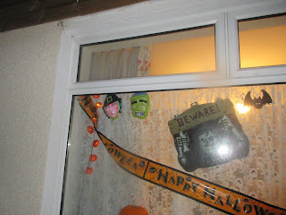 I kicked our celebrations off last Thursday (October 28th) by putting up our decorations, decorating the front door and living room window with the small selection of decorations I have. Then carved my pumpkins the following day, and added them to the display.