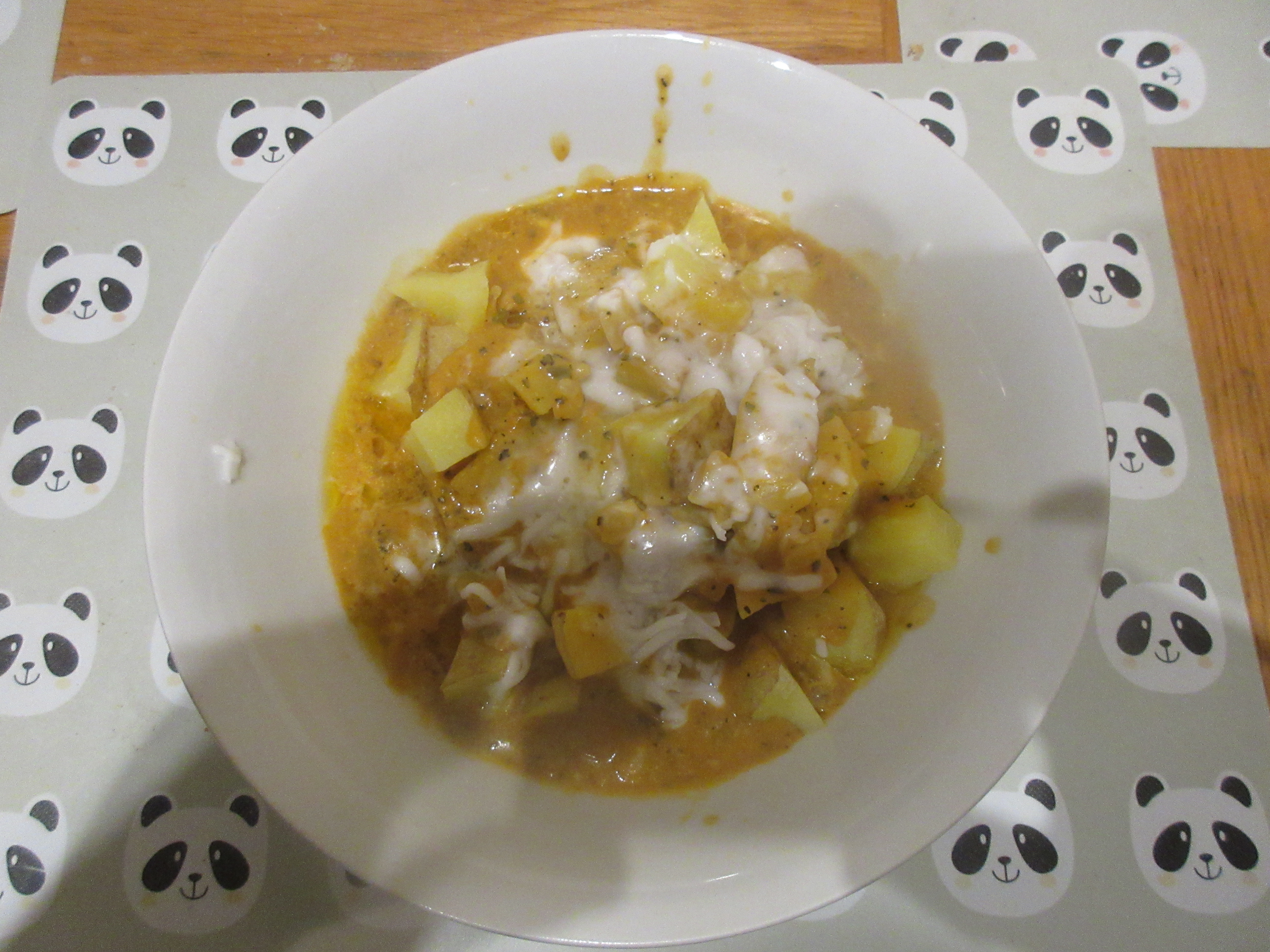 For my Samhain feast I had a baked potato with pumpkin sage sauce, topped with some vegan cheese.