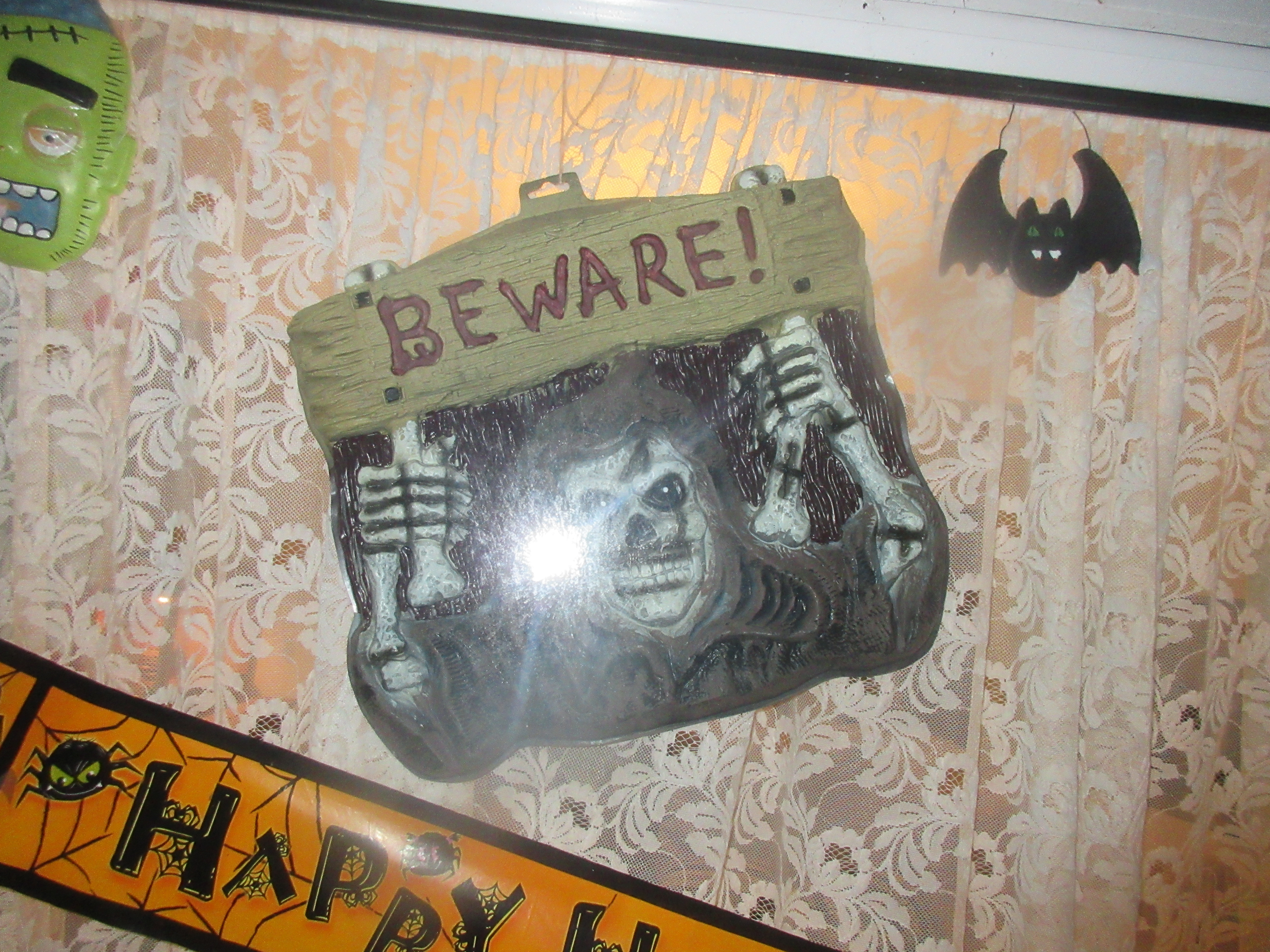 Most of my Samhain decorations are decorations from previous years, except for the maple leaf lights decorating the glass of the front door, which were new additions to my decorations this year. I spotted them on Amazon a couple of months ago, and couldn't resist.