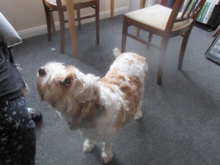 Anyway, to cut a long story short, we ended up deciding to leave Lilie with the groomer and bring Logan home to do what we could for him ourselves, which essentially boiled down to giving him a home haircut, since we couldn't comb out the knots, so ended upp cutting them out instead. We did it that way because Lilie is too excitable for us to manage to do ourselves, where as Logan is much more laid back. Plus, Lilie's claws were a big issue and we couldn't do those ourselves.