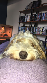 Amusingly, Logan actually slept through most of the process. He must really trust me to fall asleep when I'm wielding a pair of scissors near him, that's for sure. I know I wouldn't have been sleeping in his position... I think few people or animals would have been that relaxed when a blind person was using scissors on them. But somehow Logan was sleeping so soundly he was snoring a lot of the time, and didn't seem to care about anything besides the fact I was paying attention to him. I tell you, my dog's mental. On the bright side, it made it easier to deal with his grooming needs with him asleep.