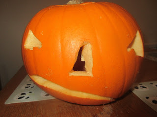 And now both Mr. Pumpkin-Heads are in my Dad's garden providing food for the wildlife who might consider pumpkin to be a tasty treat, since I sent them home with Dad on Tuesday. I'm sure some of the wildlife will be glad of the food, especially given how Wintery the weather has become recently, but his garden is more suited to putting them out like that than our yard is.