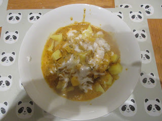 On Tuesday Dad was here for gaming and dinner, and I made us a stew using leftover pumpkin sage sauce as the liquid part, which contained potatoes, sweet potatoes, carrots, swede, butternut squash, leeks, and onion. Later, before he went home, we had some of what was left of my pumpkin pie with some of the soya squirty cream, and I sent him home with a couple of the cookies.