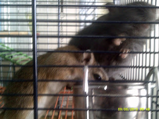 Degus are the kinds of animals that are a lot of work to keep happy, but I love our boys... Even though they fight a lot, seem to delight in throwing things out of their cage for us to pick up, and delight in confusing me so as to get extra nibbles. Mostly they're sweet little guys though, as long as we remember to keep something on for them to listen to constantly, and make sure we're aware of sunrise and sunset times to be sure they don't find themselves in the dark. Unless a storm comes, then they get upset no matter what we do; especially Jasper.