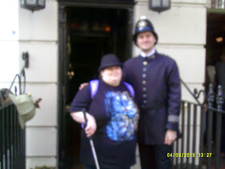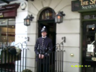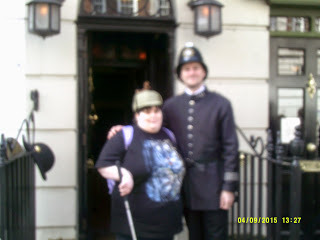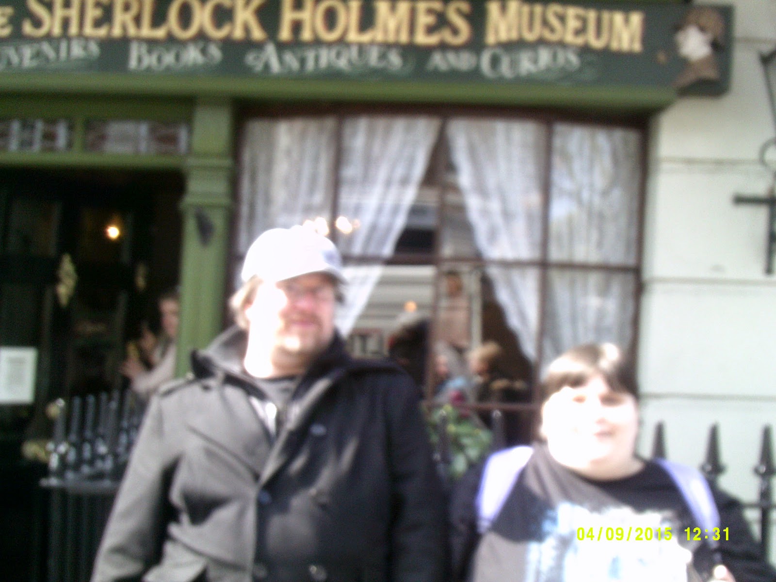 After we'd had lunch on Thursday, we headed to The Sherlock Holmes museum and Barb took a photo of Kelly and me outside it before she left us to join the long line to get in. Here's the photo: