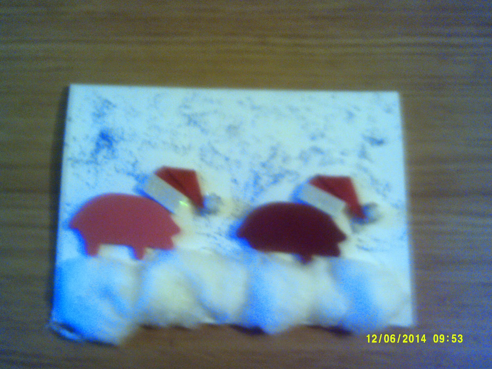My brother, Carl, and his girlfriend, Tory, said they were going to celebrate Hogswatch this year; if you don't know what it is, read Terry Pratchett's "Hogfather" or watch the movie of the same name based on the book. Anyway, since they were doing Hogswatch, I decided to make them a Hogswatch card instead of a Christmas card: