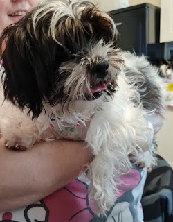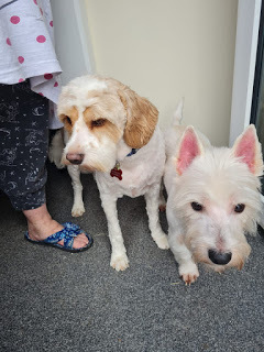 Plus, me and Logan got new tags with our names and phone numbers on, and went for a much needed grooming session. We got cut shorter than Mummy and Daddy usually have us done, because how Avirus has messed things up means Mummy has had trouble getting us in for a grooming session, so we needed it. Anyway, here are some photos Nana took after she brought us home to Mummy after we got groomed: