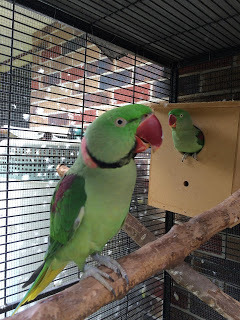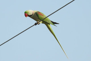 “Oh, by the way, the picture of the male Alexandrine Parrot on the wire isn’t me. My human wanted you to get a good look at our tail. The picture is taken by Dr. Raju Kasambe.”