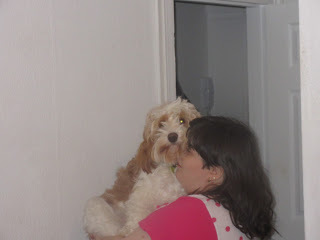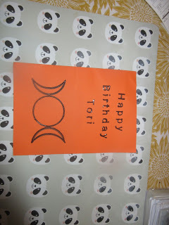 Kelly and I don't usually exchange cards, but I asked Lilie the day before my birthday what she'd gotten me, and she got so upset when nothing was produced. She hung her head and put her ears back, and ran to Kelly with a little whimper. I told her it was fine, and I love her even if she forgot my birthday, but she kept coming to me with her ears back to give me tentative kisses like she does to ask for forgiveness when she's been scolded. So Kelly fetched a birthday card from up the road for them to give me, which made Lilie happy. She's so sweet!